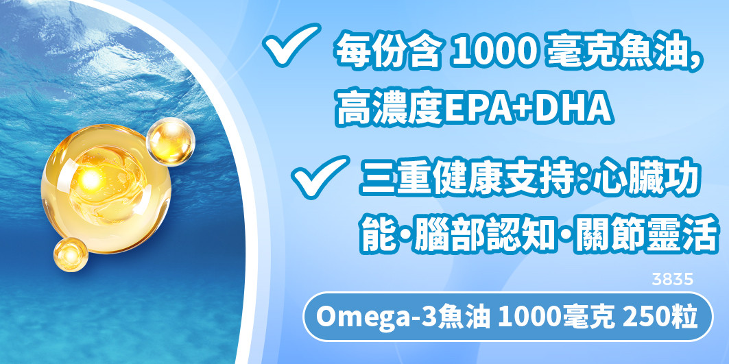 含有人體所需的 Omega-3 脂肪酸,可維持心臟和關節的健康。 *這些脂肪酸有助於維持身體一切正常運轉,改善日常健康。 *