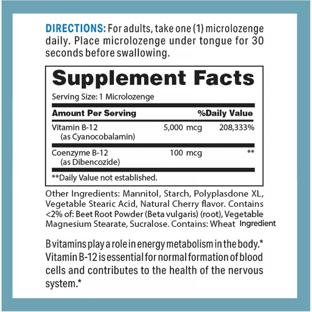B-12 对于能量产生和神经系统支持至关重要。 *