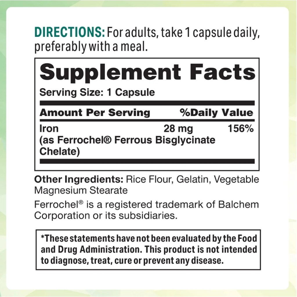 Ferrochel® chelated iron is gentler on your stomach and digestive system than traditional forms of iron. Iron is a major component of hemoglobin, the oxygen carrier in the blood supporting healthy energy utilization.