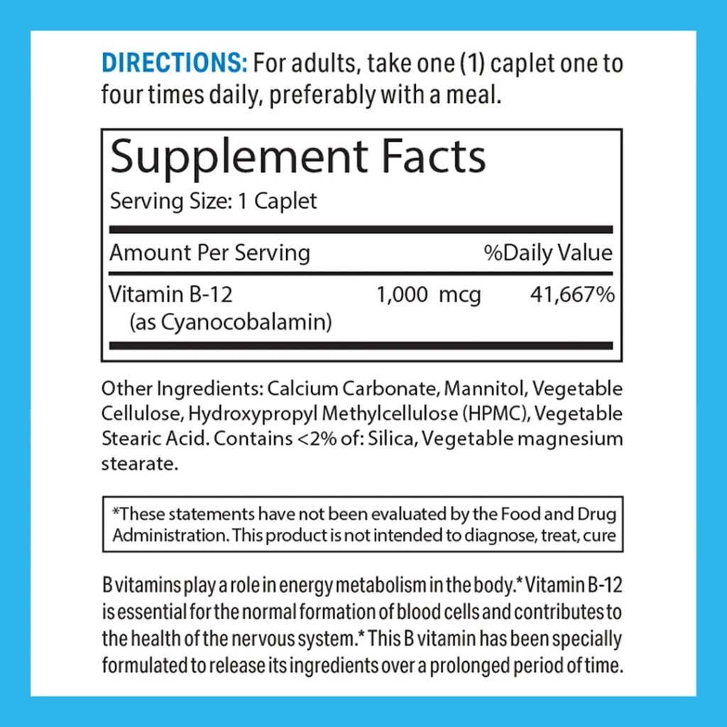 維生素B群在身體的能量代謝中起著重要作用。* 維生素B-12對正常的血細胞形成至關重要,並有助於神經系統的健康。* 此款維生素B經過特殊配方設計,可延長成分的釋放時間。